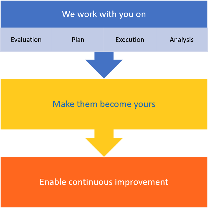 We support you during evaluations, planning activities, executions and analyses ensuring that all details are well understood.