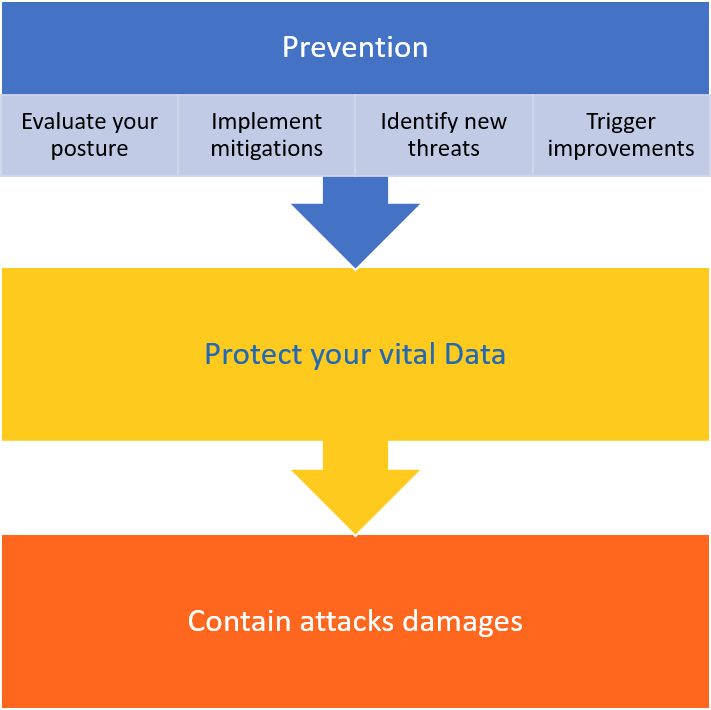 Being able to identify new threats and triggering improvements for the protection of the data vital to your organization will help you containing the damages of attacks.